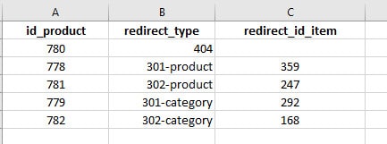 You can apply the SEO redirection options to your products in bulk using the csv import.